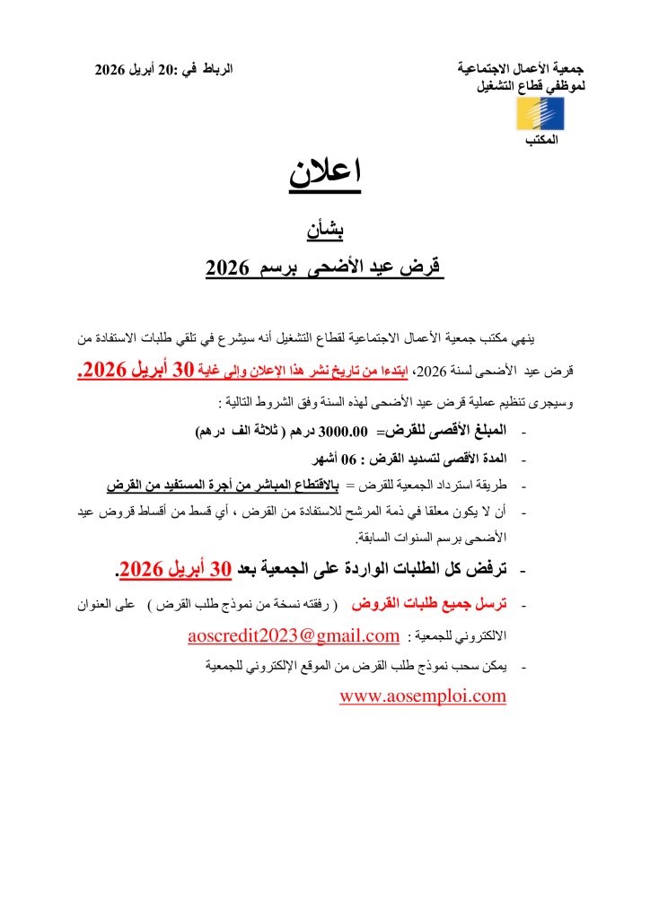 الرئيسية / المستجدات / إعلان بشأن قرض عيد الاضحى 2026